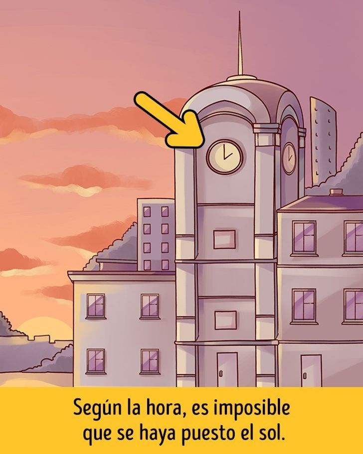 A continuación, les dejamos la respuesta de este reto visual que puso a varios jóvenes y adultos a trabajar el poder visual de sus ojos. El error se encuentra muy cerca del centro de la imagen. Así lo podemos observar en esta última imagen donde se señala con una flecha gruesa de color amarillo y además se aclara que “Según la hora, es imposible que se haya puesto el sol.”. Los esperamos a todos nuevamente a realizar la próxima aventura.