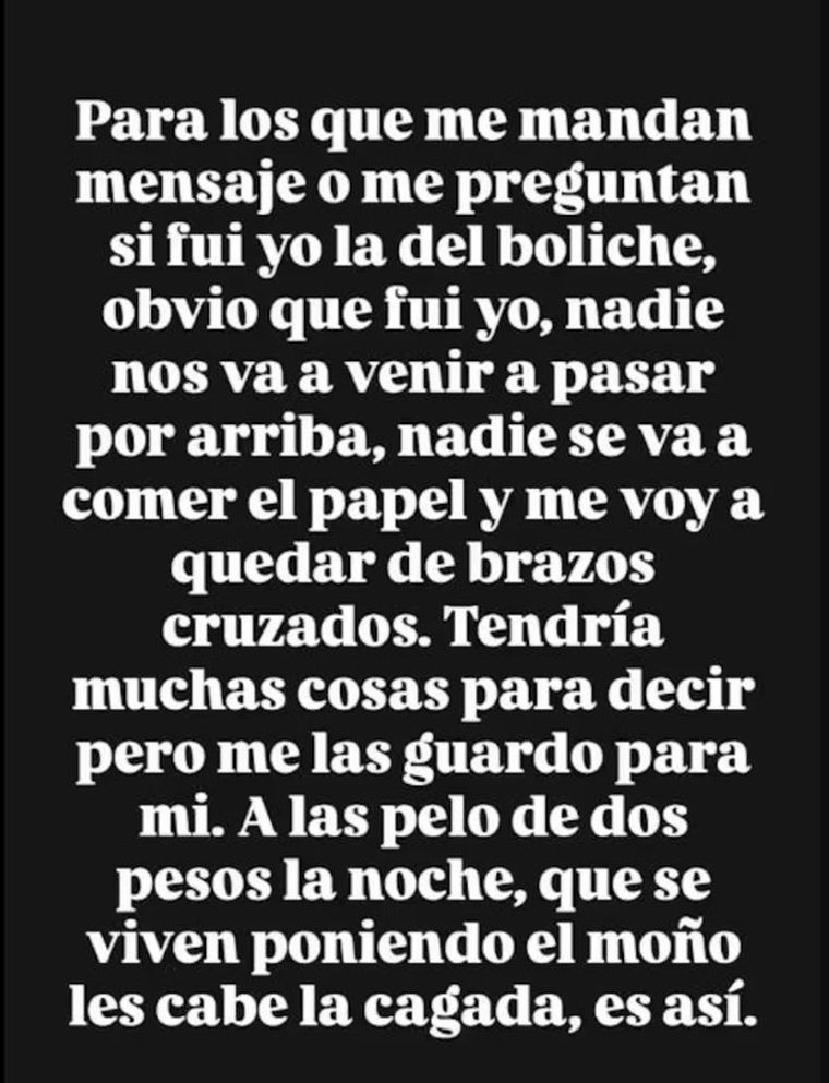 Lejos de evitar los comentarios, Morena Rial se refirió al tema en sus redes sociales. En una publicación dejó en claro que no se arrepentía de lo sucedido y que no iba a permitir que la pasaran por encima.