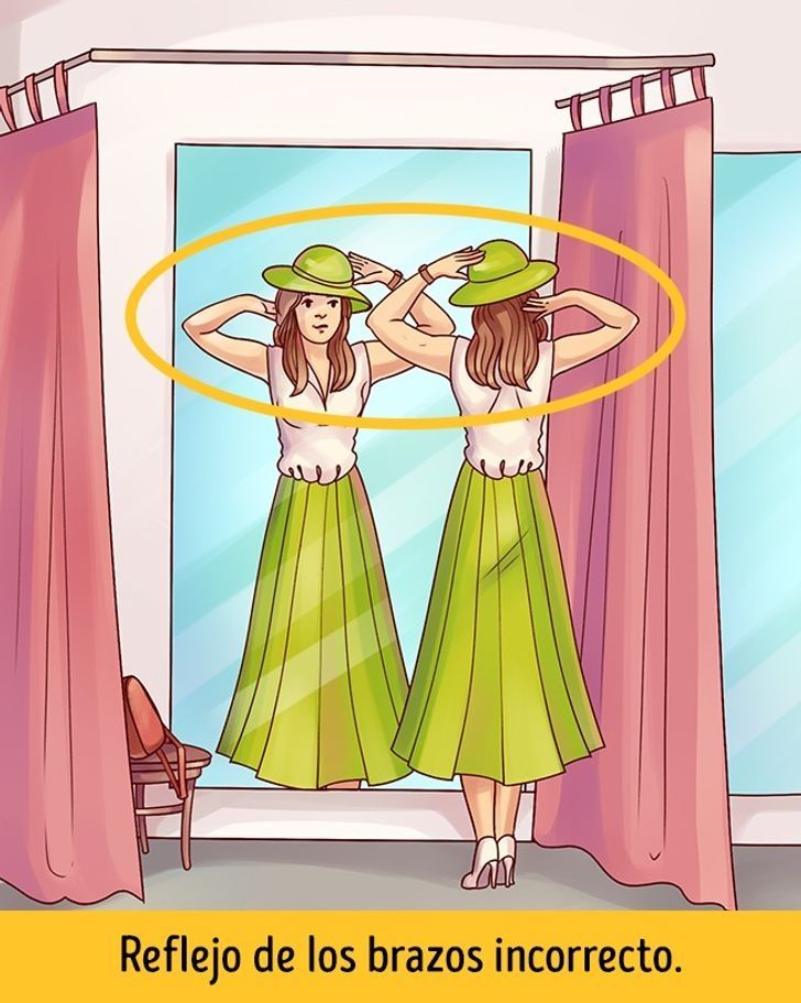 En esta mencionada lámina se puede observar una caricatura de una mujer joven mirándose en un espejo mientras ve como le queda un sombrero en un probador. En este nuevo reto visual posee una anomalía que es difícil de encontrar en una primera instancia.