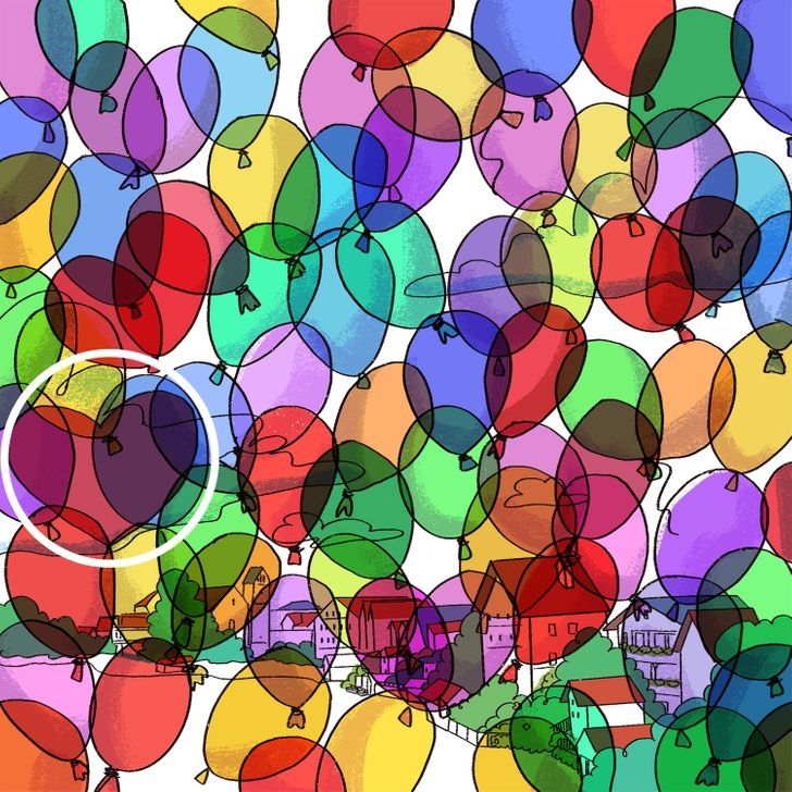 En este simple y colorido dibujo, se puede observar decenas de globos de distintos colores sobre un fondo blanco. En este nuevo reto visual se encuentra un órgano vital del cuerpo humano infiltrado, el cual es difícil de encontrar en una primera instancia.