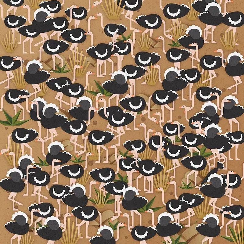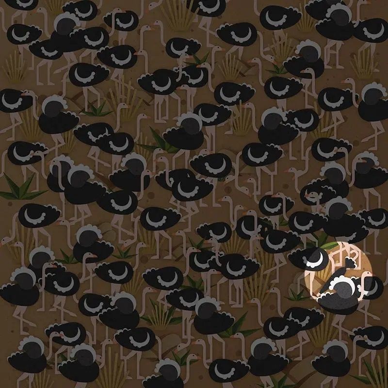En este simple y colorido dibujo se puede observar decenas de avestruces una al lado de la otra sobre un fondo marrón. En este nuevo reto visual se encuentra un objeto infiltrado, el cual es difícil de encontrar en una primera instancia.