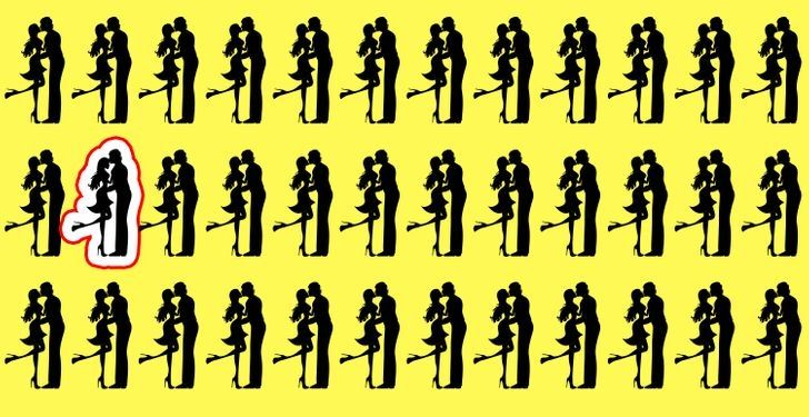 En esta ocasión, quienes se animen a realizar el reto, deberán observar detenidamente la imagen en la que figuran las siluetas de varias decenas de parejas dándose un beso sobre un fondo amarillo y descubrir cuál de ellas es diferente. A primera vista puede, quizás, parecer simple pero son pocos los que han logrado dar con el resultado correcto.