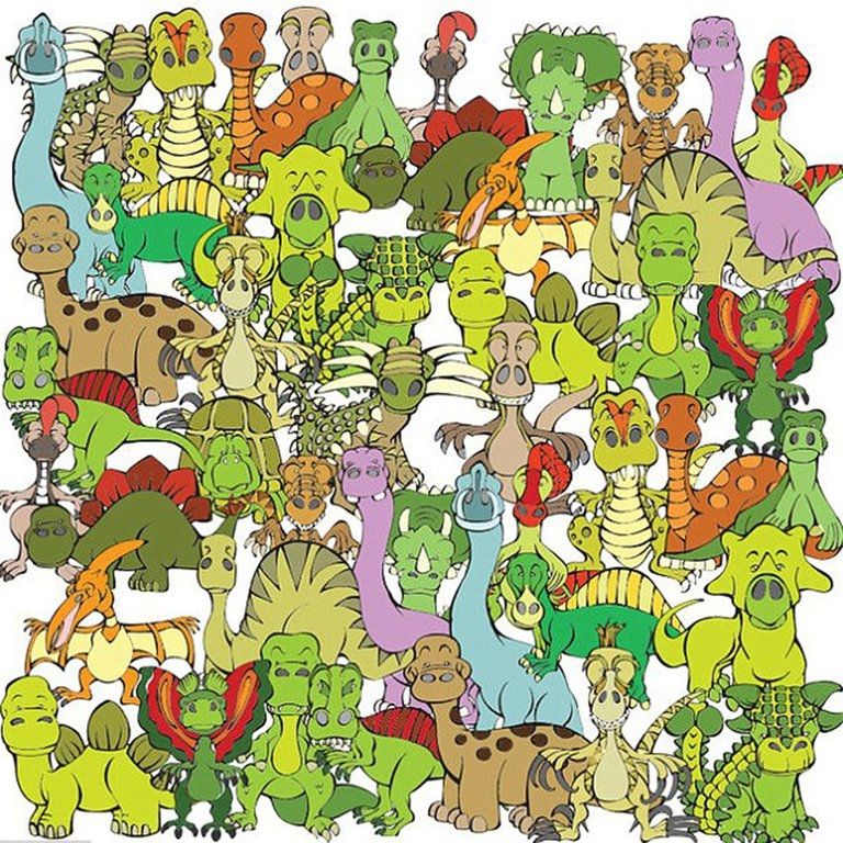 En esta mencionada lámina se puede observar una lámina llena de distintas caricaturas dinosaurios, uno al lado del otro, sobre un fondo blanco. En este nuevo reto visual posee un infiltrado que es difícil de encontrar en una primera instancia.