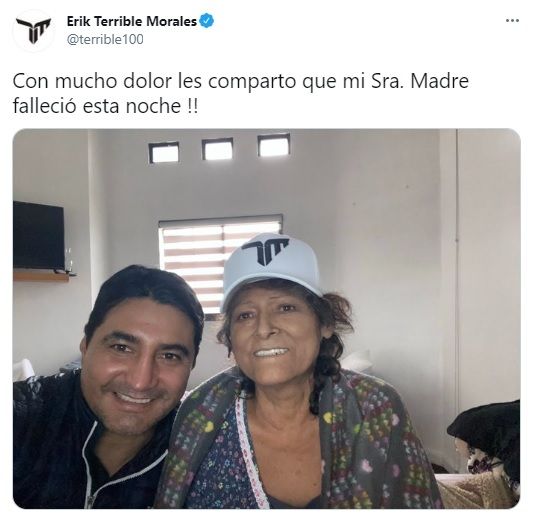 El ex-boxeador profesional y entrenador mexicano Erik Morales difundió en sus redes sociales la lamentable noticia del fallecimiento de su madre. "Con mucho dolor les comparto que mi Sra. Madre falleció esta noche", escribió en Twitter. Hace poco menos de un año, Érik ya había señalado las complicaciones de salud que mantenía su progenitora.