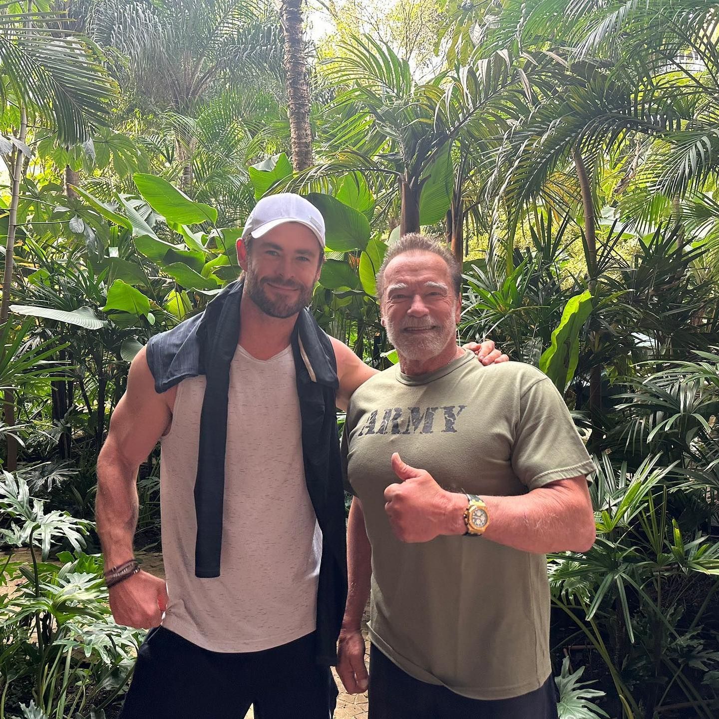Épico encuentro de dos leyendas en el gimnasio: Chris Hemsworth y Arnold Schwarzenegger
