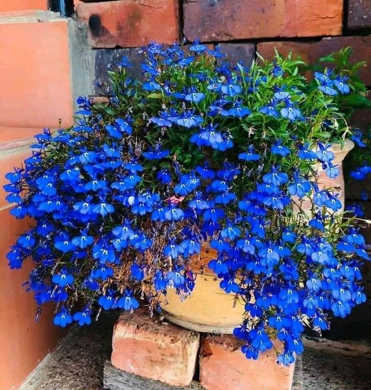 La lobelia colgante forma una cascada de flores que cubre el borde de las macetas. Sus colores azul, violeta, lila y blanco generan contraste con paredes y barandas. El crecimiento es parejo y compacto. Esta planta se adapta bien a balcones y terrazas. Funciona en cestas colgantes y también en macetas altas. En jardines verticales suma color sin ocupar espacio.