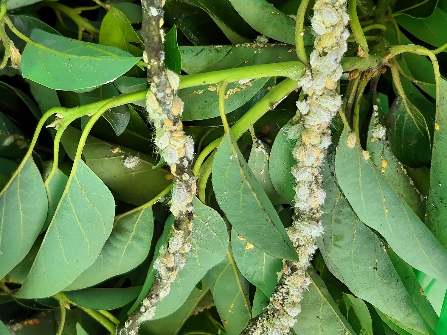 La presencia de la cochinilla en el árbol de aguacate puede verse reflejado en escalas negras o blancas. Si bien su aparición se da rara vez, es difícil que provoque infecciones graves.