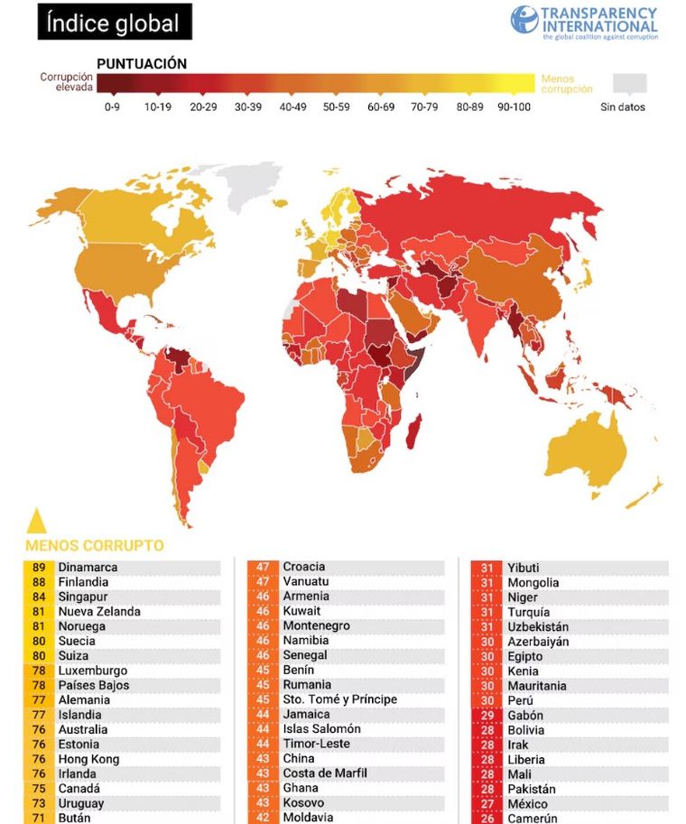 Quiénes están en la cima y el fondo del ranking de corrupción 2025. Estos son los países más y menos corruptos según este índice.