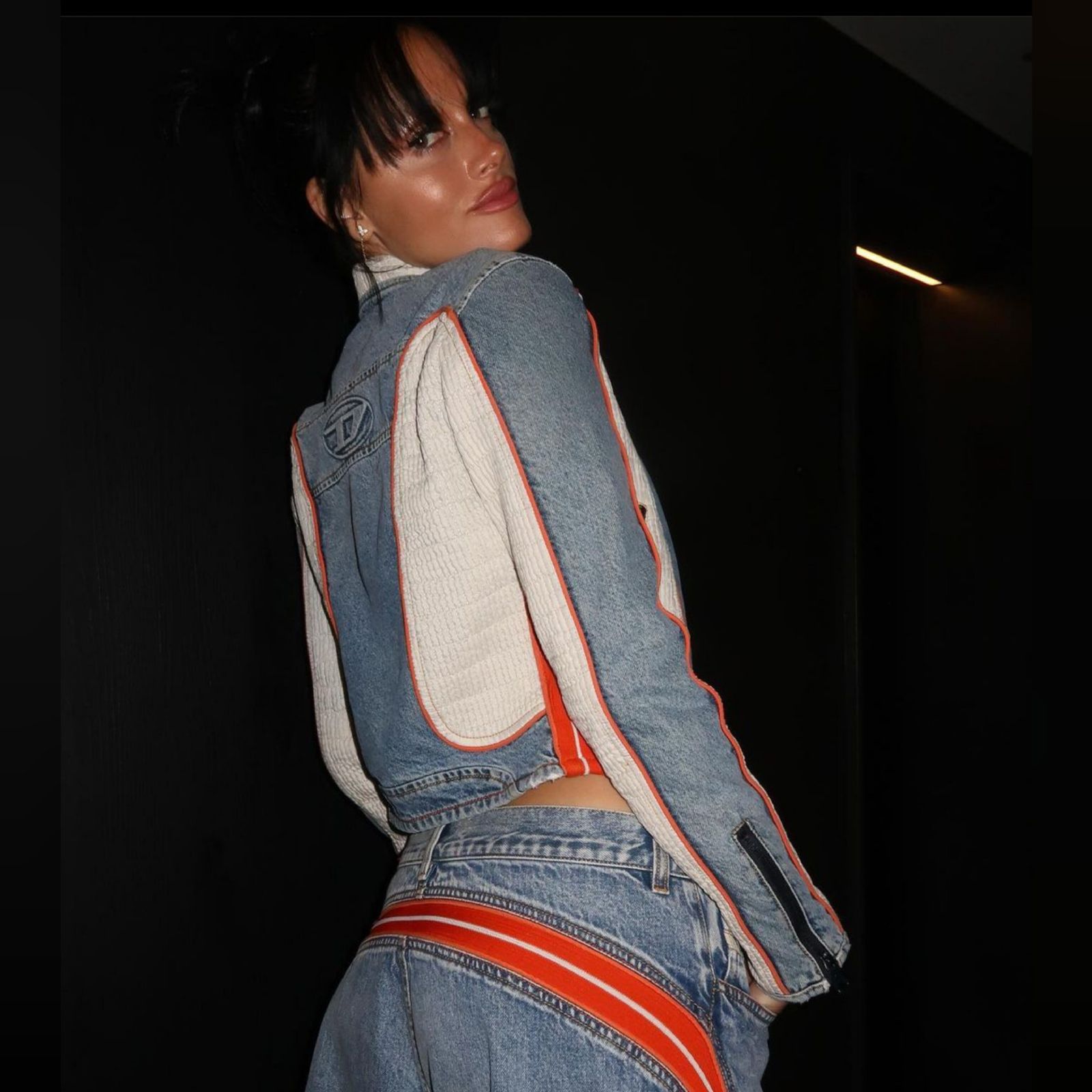 En el caso de Oriana Sabatini se puede observar una vestimenta completa con retazos de tela de jean, empezando por la chaqueta de Diésel y siguiendo por el jean elegido con una franja roja y blanca. El estilismo estuvo a cargo de la diseñadora Alisson Fullin.