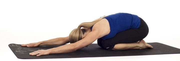 Este es uno de los ejercicios más comunes para estirar la espalda y las piernas. Para hacerlo, debes apoyar la parte inferior de tus piernas en una colchoneta, flexionarlas y llevar el pecho y las manos al suelo, estirando bien la espalda.
