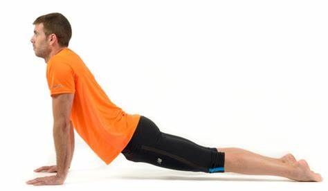Para estirar la espalda baja, apoya tus piernas hacia abajo en una colchoneta. Luego, apoyas las palmas de las manos y estiras bien el tren superior con los brazos rectos y la cabeza erguida.