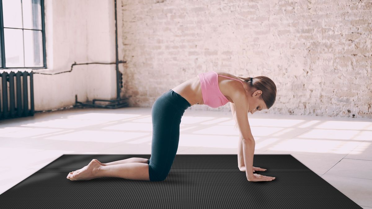 En posición de cuatro patas, arqueamos la espalda hacia arriba como los gatos.