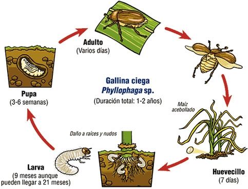 Se los conoce popularmente como gallina ciega o gusano blanco, pero realmente se trata de las larvas de diferentes especies de escarabajos. Estos insectos son bastante desagradables y, normalmente, podemos encontrarlos en nuestras macetas o jardín cuando hacemos tareas de cultivo o renovamos el sustrato.