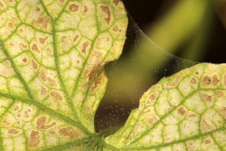 La araña roja, o el ácaro de las plantas, aparece principalmente en primavera y verano. No es posible distinguirlas a simple vista, pero verás síntomas como un color plateado en las hojas o al ver pequeñas telas de arañas cuando ya sea muy avanzado.