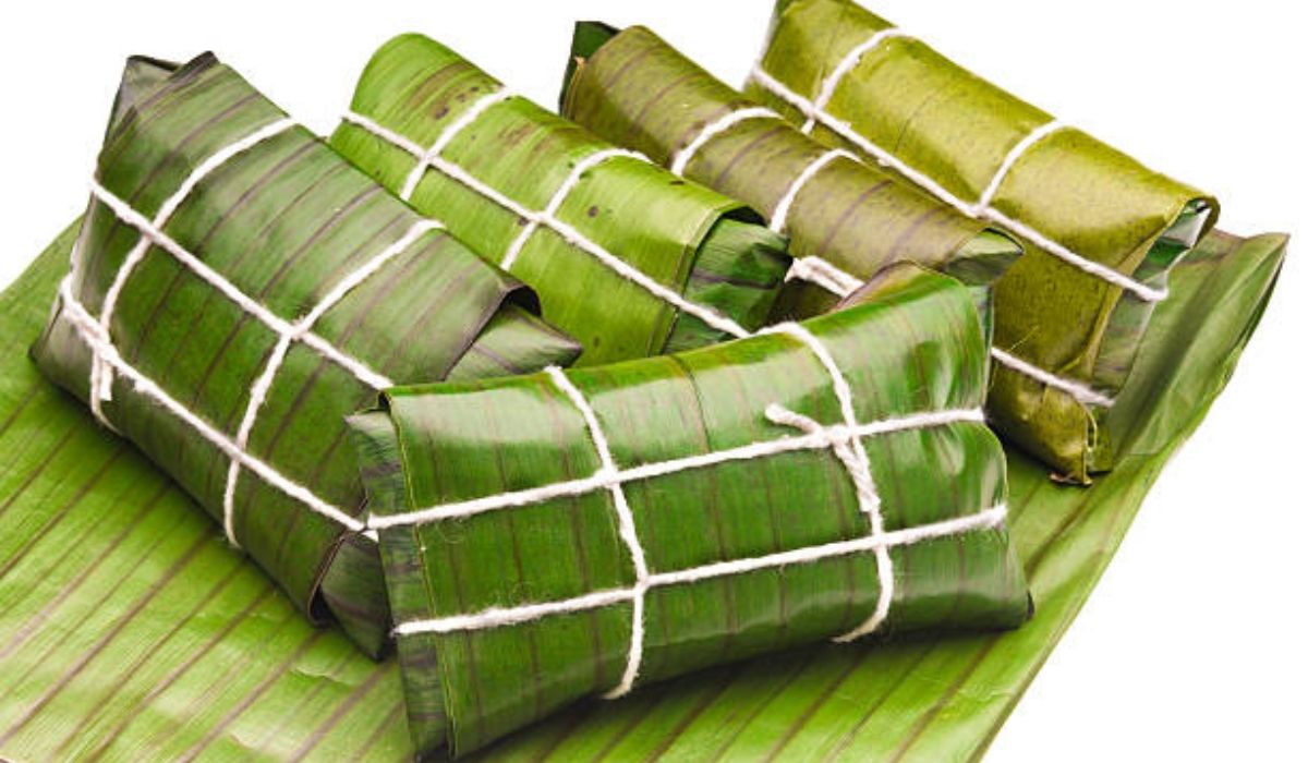 - Pasa las hojas de plátano por el fuego para que se ablanden y sean más manejables.