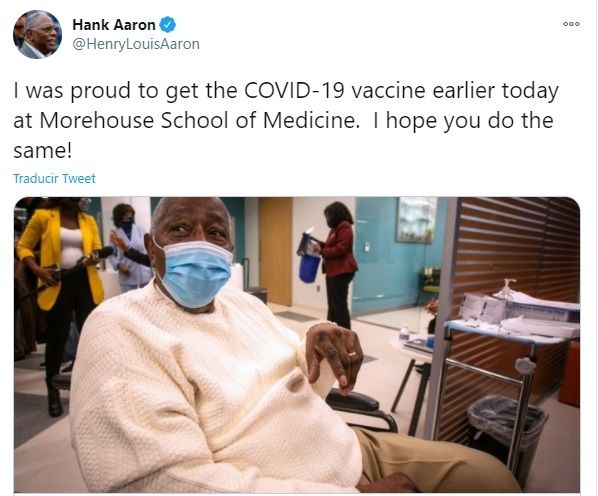 Hank Aaron se vacuna contra el COVID-19 para concientizar a la comunidad afroamericana