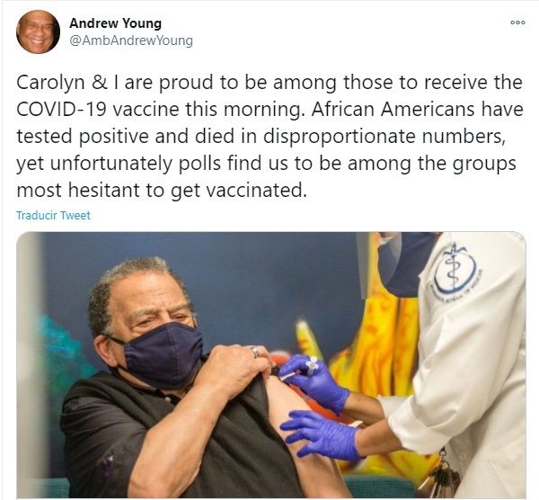 El miembro del Salón de la Fama del Béisbol, Hank Aaron, el ex embajador de la ONU y líder de derechos civiles, Andrew Young, y el exsecretario de Salud y Servicios Humanos de EE.UU., Louis Sullivan, se vacunaron contra el COVID-19 en Georgia el martes, con la esperanza de enviar un mensaje a los afroamericanos de que las inyecciones son seguras.