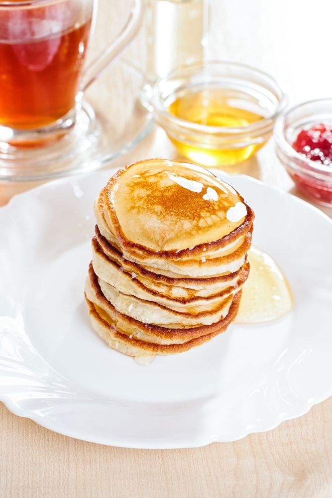 Cuando termines de hacer los hot cakes, acompáñalos con mantequilla, miel y fresas.