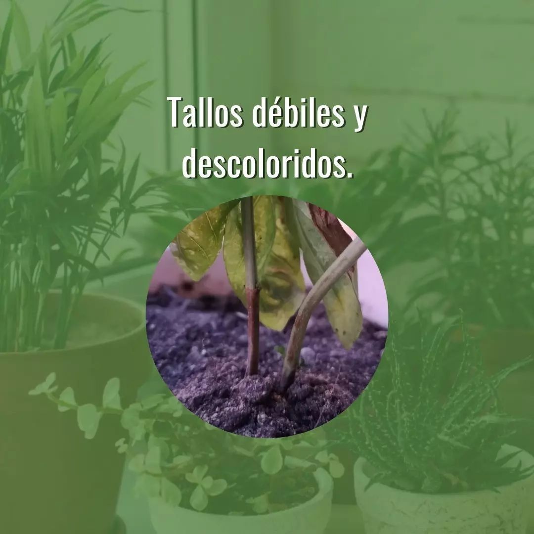 - Tallos frágiles y pálidos: un claro indicio de que la planta no está recibiendo suficiente agua.