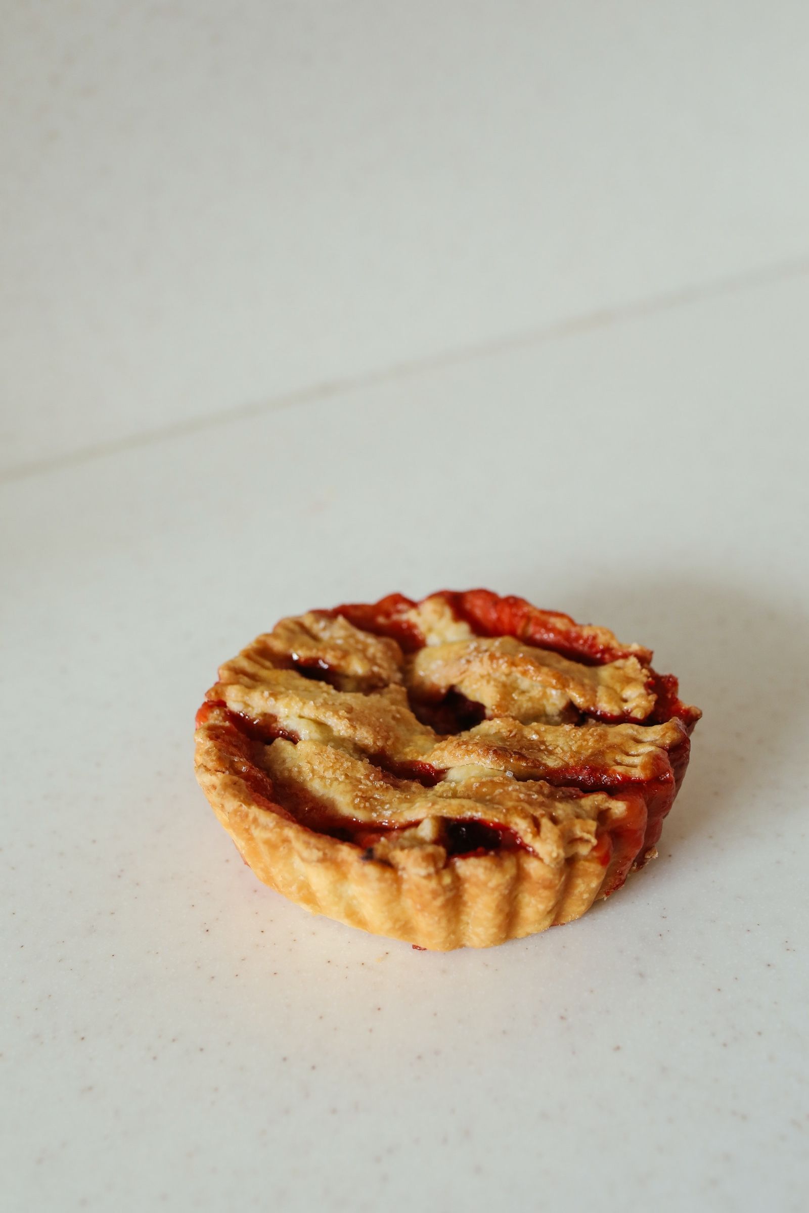 Cuando estén listas las tarteletas rellenamos con el dulce, preparamos las tiras y acomodamos en la parte superior, horneamos por 5 minutos más ¡y listo!