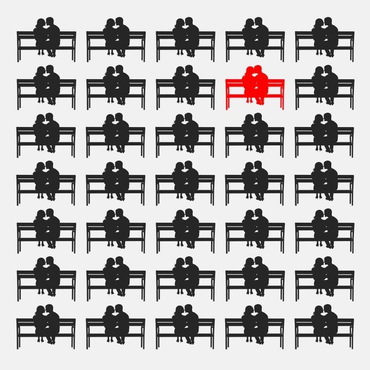 A continuación, les dejamos la respuesta de este reto visual. La pareja distinta se encuentra muy cerca del centro de la imagen remarcada con color rojo.