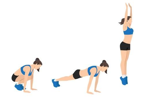 - Burpees, 5 repeticiones