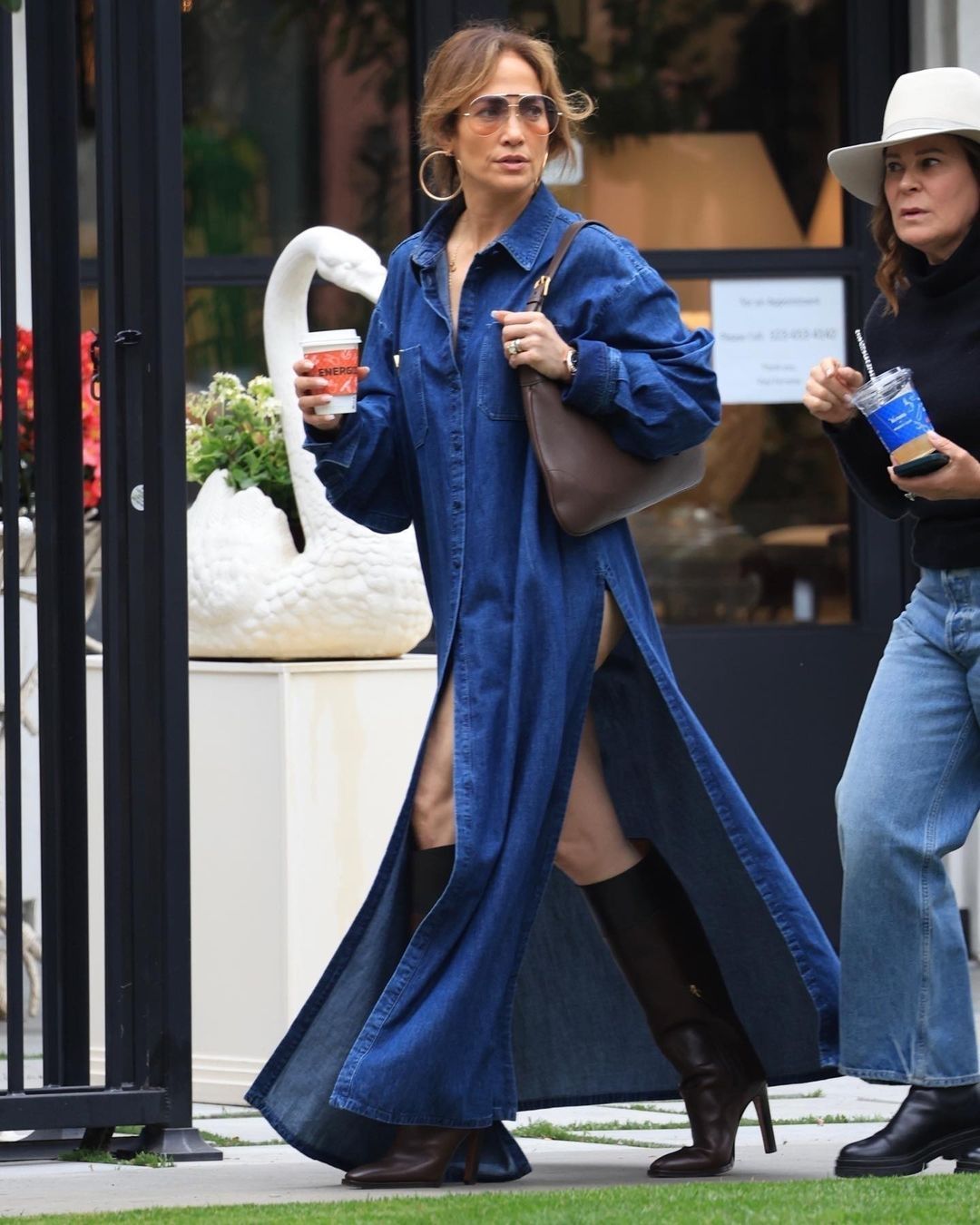 En las fotos publicadas por Backgrid, se puede observar a Jennifer usando un vestido camisero vaquero, una de las elecciones más populares de la temporada. En este caso, la diva del Bronx optó por un modelo manga larga con aberturas laterales que dejan ver sus piernas. Para agregar su toque personal, la actriz lució unas botas altas de 10 centímetros, un bolso color marrón firmado por Gucci y unas gafas de sol a tono.