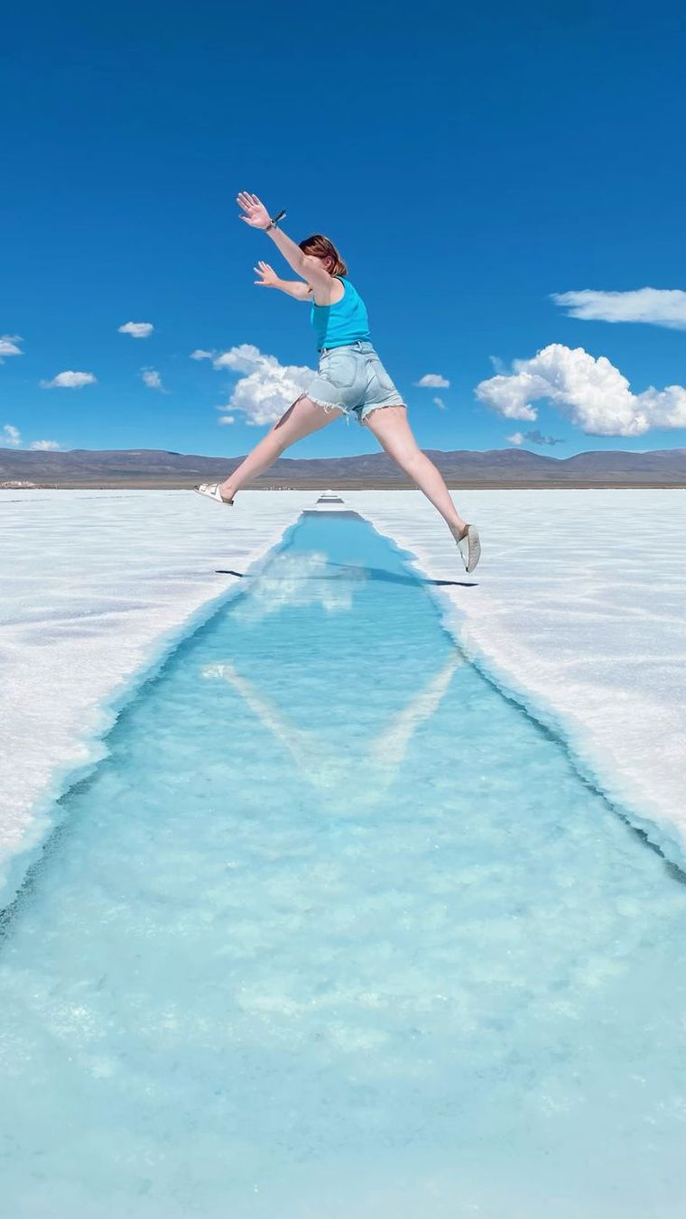A pocos kilómetros, otro escenario sorprende. Salinas Grandes aparece como una inmensa planicie blanca a más de 3.400 metros de altura. Es uno de los salares más grandes de Sudamérica y uno de los puntos más fotografiados del país.