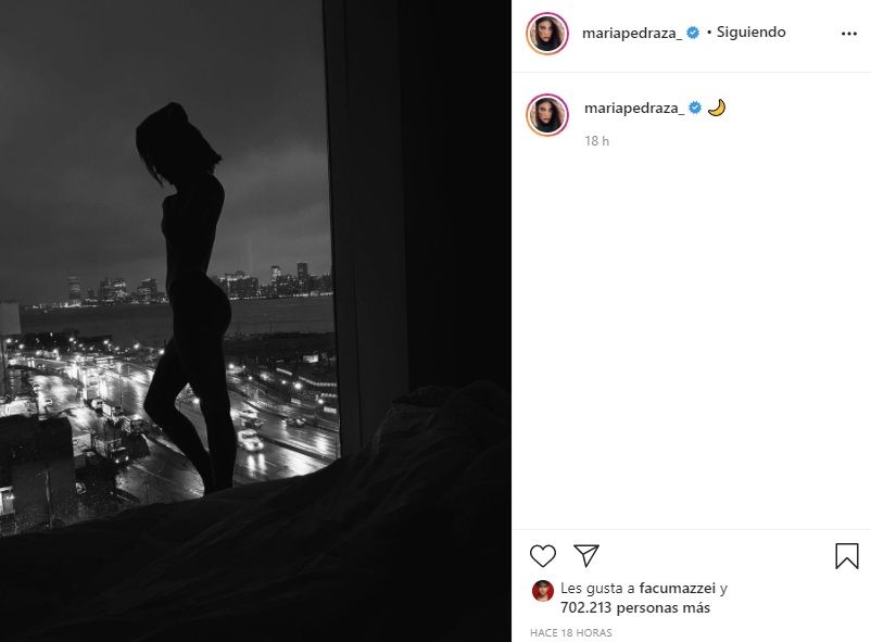 En las últimas horas, Pedraza compartió una postal en la red que dejó a más de uno boquiabierto. La joven subió una instantánea en blanco y negro donde enseñó su hermosa figura y acompañó la publicación con el emoticón de una medialuna.