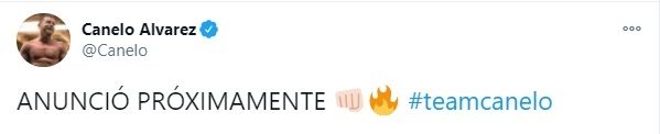 Saúl Canelo Álvarez está próximo a anunciar su primer combate del 2021. El mexicano utilizó su cuenta de Twitter para revolucionar a los fanáticos con un simple posteo: "anuncio próximamente", escribió el tapatío y con eso bastó para que la publicación tuviera cientos de mensajes sacando diversas conclusiones.