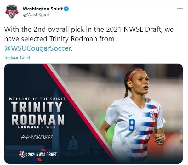 Trinity Rodman, hija del exbasquetbolista Dennis Rodman, ya tiene equipo para seguir su carrera en el futbol profesional al ser la segunda elección global del Draft de la NWSL. Será el Washington Spirit el nuevo equipo de una de las jugadores con mayor proyección de los Estados Unidos.
