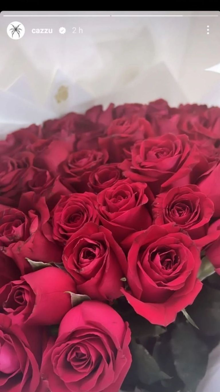 Con la intensión de que su novia piense siempre en él y no tenga dudas de que la ama demasiado, el intérprete decidió sorprenderla a la distancia con un hermoso regalo. A través de sus historias de Instagram, la trapera compartió una imagen donde se ve un inmenso ramo de rosas de color rojas. Por supuesto, un gesto muy romántico que fue celebrado por sus seguidores.