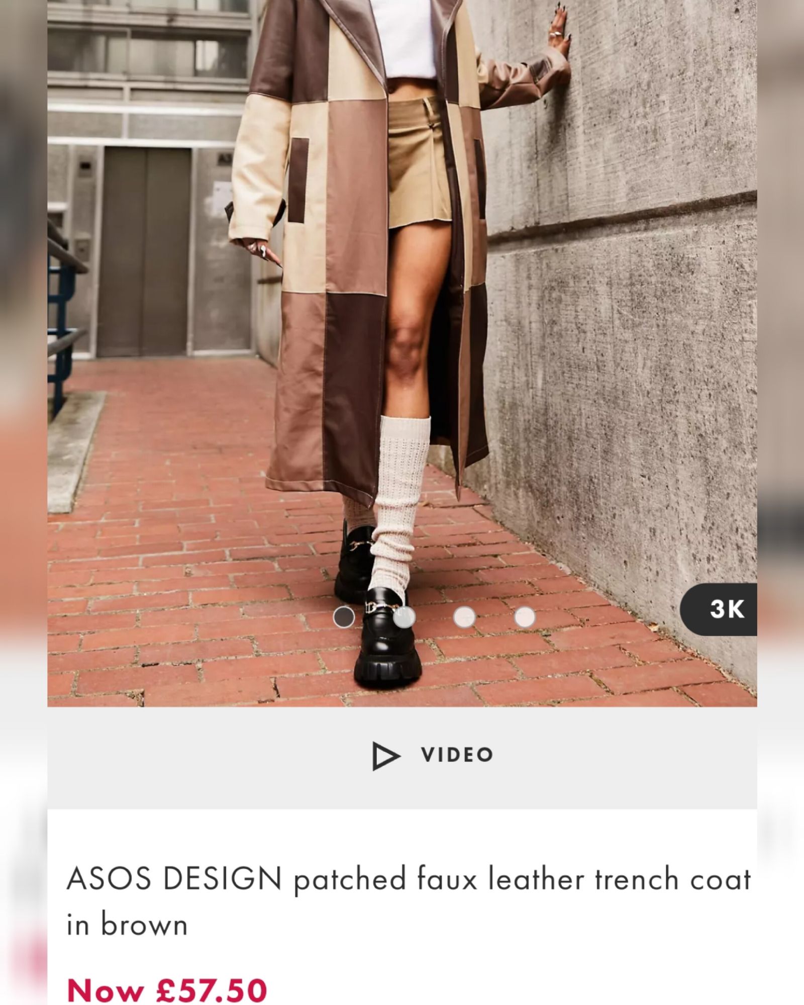 Tal cómo se puede apreciar arriba el modelo que Lali lleva encima se trata de un "patched faux leather trench coat", según a lo que pudimos acceder por medio de la página oficial de Asos no está el mismo diseño que lleva la artista pero en precio mercado tiene un valor aproximado de 57,50 euros.