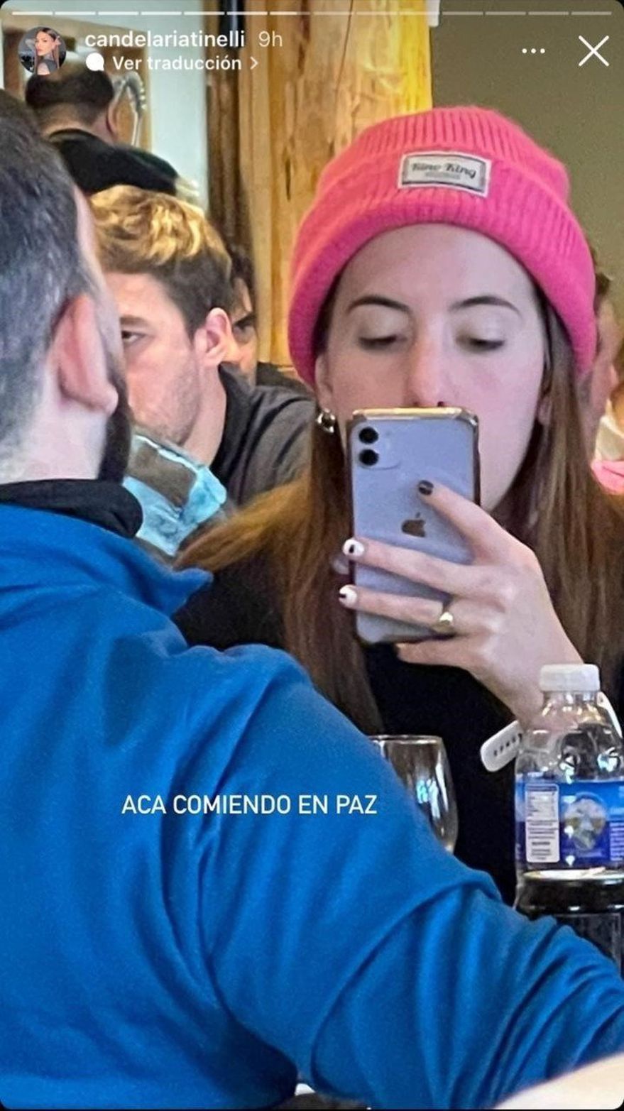 “Acá, comiendo en paz” escribió Candelaria junto a la fotografía de la infraganti mujer que se muestra con su celular en mano. La hija de Marcelo Tinelli colgó dicha imagen en sus historias de Instagram.