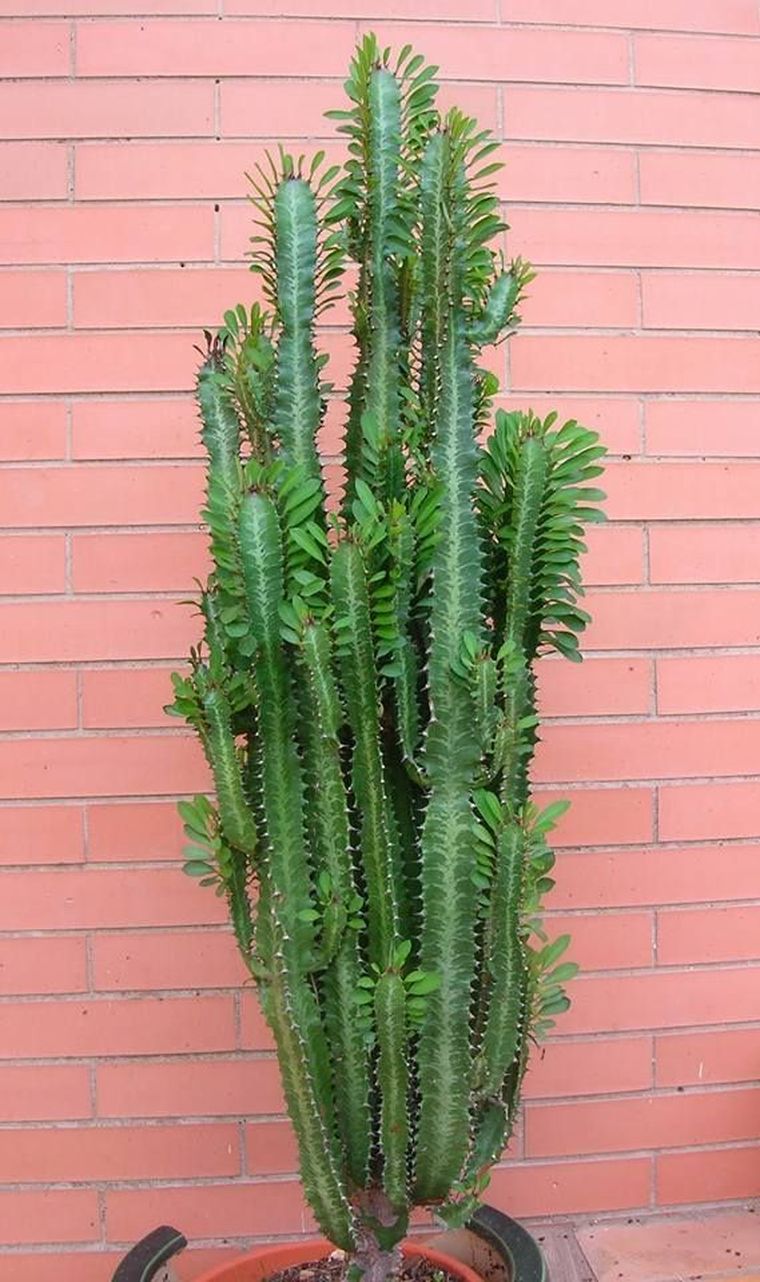 La Euphorbia trigona tiene un perfil arquitectónico que la hace única entre las plantas de interior. Su forma recta y geométrica encaja en ambientes contemporáneos y la hace fácil de mantener. Crece lento, no exige atención diaria y en una maceta simple de líneas rectas eleva cualquier rincón sin esfuerzo.