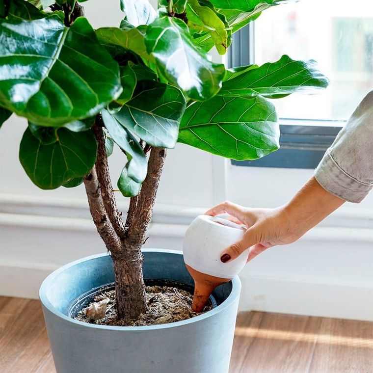 El Ficus lyrata es la opción para quien quiere un punto focal en un rincón luminoso. Sus hojas grandes y escultóricas funcionan como una pieza de arte vivo. Necesita luz indirecta y riego moderado. En salas con techos altos, su presencia equilibra el espacio sin saturarlo.