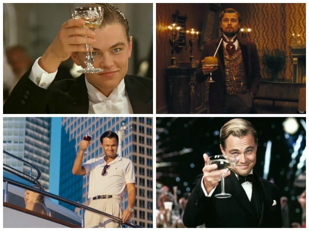 Leonardo Dicaprio: nadie en su sano juicio habría de poner en tela de duda los dotes actorales del que muchos llaman el mejor actor de su generación. Pero nadie en Hollywood, ni siquiera él se atrevería a negar que siempre en sus films está brindando, lo más curioso es que pocas veces este brindis se da con alguien; regularmente Dicaprio lo hace a cámara.