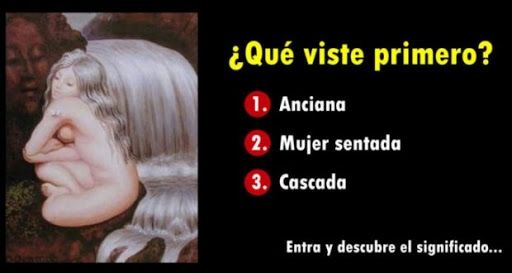 El rostro de una anciana: Quienes observaron primero el rostro de la anciana quiere decir que son individuos muy creativos y siempre están buscando nuevos aprendizajes. Tienen un gran positivismo antes las cosas, permanentemente están mirando el lado bueno de todo lo que les pasa, incluso si son cosas malas. Debes considerar que no todas las personas piensan como vos, pero esto no importa tanto ya que tienes una virtud maravillosa que no debes dejar que nada ni nadie te la quite. Entre tus habilidades, saber cómo ver las posibilidades de aprendizaje de cada situación.