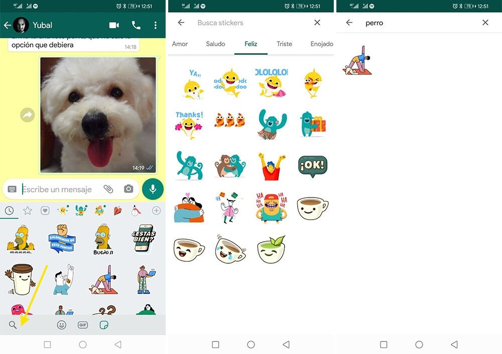 La aplicación te mostrará los distintos stickers que esten relacionados a esa categoría. Ten en cuenta que el buscador funciona solamente con los stickers que tengas instalados en la aplicación en tu móvil.
