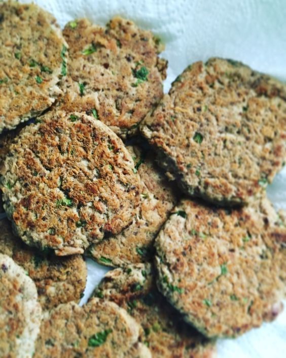 Lavamos y picamos el perejil bien finito. Tomamos un recipiente grande, colocamos el atún, la linaza, el perejil, el huevo, el jugo de limón, el ajo en polvo y condimentamos. Mezclamos hasta que se integre todo.