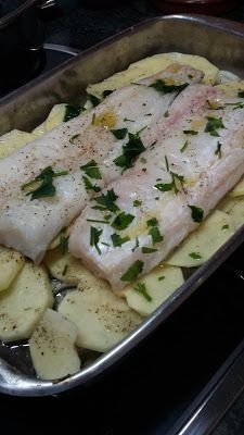 Preparamos la fuente para el horno, con un poco de aceite colocamos las verduras y acomodamos los filetes, rociamos con un poco de limón, espolvoreamos el ajo y el perejil. Sazonamos con sal, pimienta, aceite y lo llevamos al horno por 20 minutos, corroboramos la cocción de las patatas y el pescado.