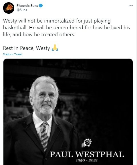 Paul Westphal, miembro del Salón de la Fama que fue cinco veces All-Star y tres veces seleccionado para el primer equipo de la NBA, murió a la edad de 70 años, anunciaron este sábado los Suns de Phoenix. El reconocido base había sido diagnosticado con cáncer de cerebro en agosto de 2020.