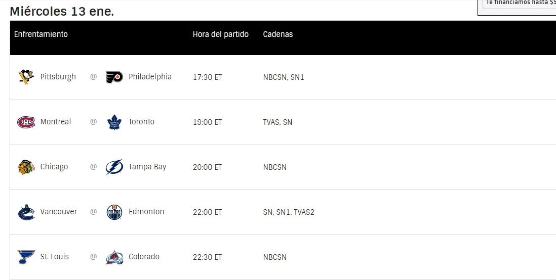 A las 8:30pm, Chicago estará en la casa del Tampa Bay Lightning, luego a las 10 pm, Vancouver estará en Edmonton, mientras que St. Louis visitará a Colorado para cerrar la jornada a las 10:30. Todos los horarios, son basados en el hemisferio este.