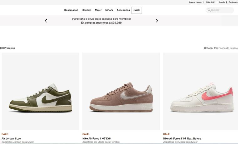 La sección se llama "Sale" y está dentro del sitio oficial de Nike Argentina. Al ingresar, los precios ya aparecen rebajados sin necesidad de códigos ni trámites. El catálogo es amplio e incluye desde zapatillas hasta botines de alto rendimiento. La estrategia apunta a vender directo al consumidor y eliminar los márgenes que suman las tiendas tradicionales.