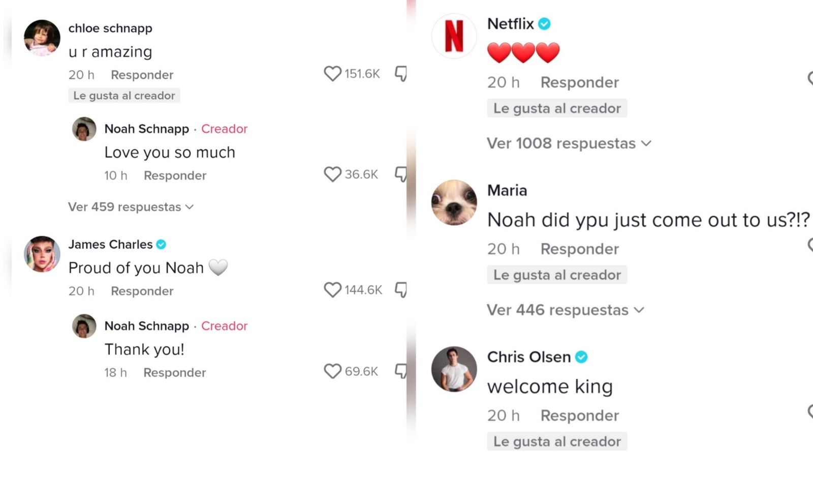 Un dato no menor es que el video cosechó más de 10 millones de corazones y en cuánto a visualizaciones 51 millones, en términos de colegas e influencers tal como se muestra en la captura de arriba se pueden ver mensajes de Chloe Schnapp (familiar), James Charles, Netflix y Chris Olsen, además de cientos de fanáticos.
