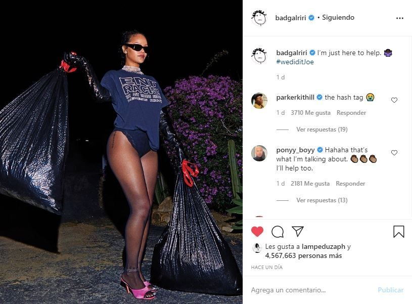 La contundente imagen de compartida muestra a la cantante sacando la basura con la leyenda: "Solo estoy aquí para ayudar #wediditJoe (Lo hicimos Joe)".