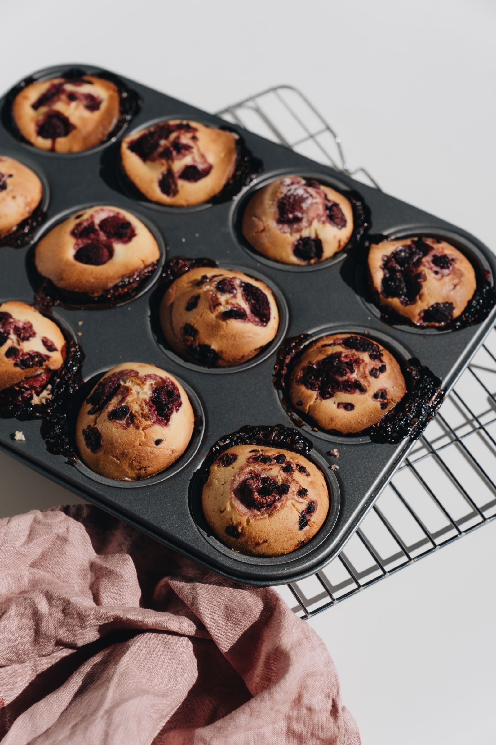 Prepamos los moldes, puedes colocar papel manteca o de horno o pirotines, rociamos con aceite y vertemos 3/4 de la mezcla. Llevamos al horno a 180ª los primeros 5 minutos, checamos la cocción con un palillo y seguramente necesitaremos unos 7 minutos más a 170ºC. Utiliza una alarma para corroborar los tiempos ¡y listo!