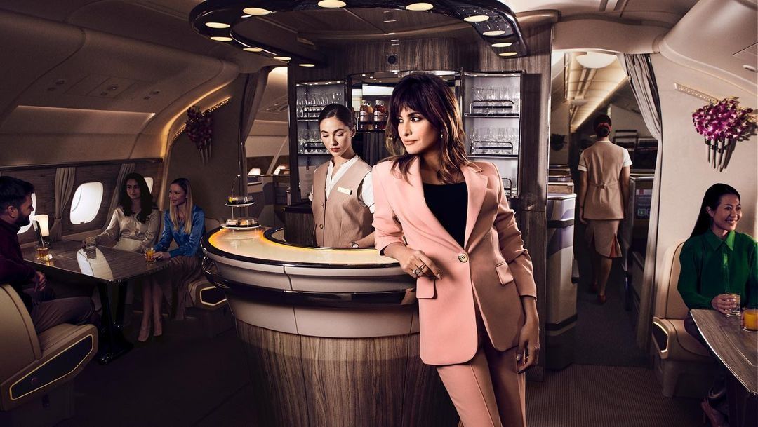 En el posteo se puede ver un par de imágenes donde la actriz posa recostada en un enorme sillón dentro de una cabina de avión con puerta individual, lo que otorga total intimidad. Estas lujosas instalaciones se encuentran disponibles para los clientes de clase business y de primera clase y están a bordo de una aeronave que incluye suites privadas, duchas y otras comodidades.