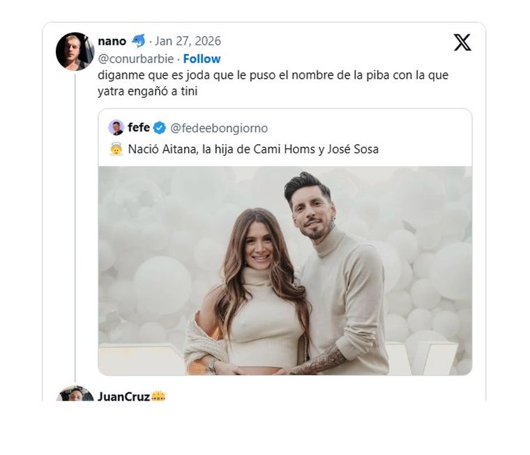 En redes, varios recordaron la historia mediática entre Cami Homs y Tini Stoessel. Para una parte del público, Aitana no resultó un nombre más. La coincidencia con el nombre real de la cantante despertó teorías, bromas y comentarios cargados de ironía.