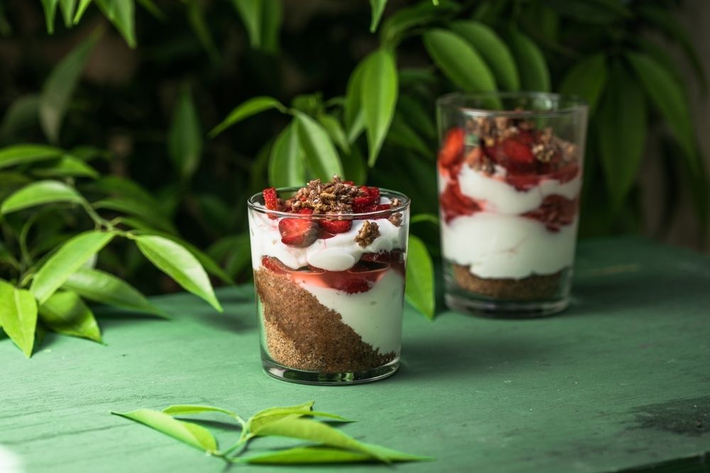 Para las capas de frutas: 2 tazas de fresas lavadas y cortadas en rodajas, 1 taza de arándanos frescos, 1 taza de kiwis pelados y cortados en trozos pequeños, 1 taza de piña fresca cortada en cubos, otras frutas opcionales según tu preferencia.